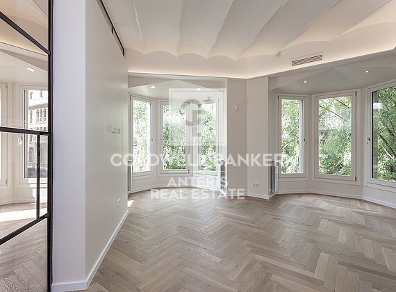 This beautifully refurbished 134m2 apartment for sale is located in the Born district, a neighbourhood full of history, art, culture and diversity. Located on a main floor, the flat has an open-plan kitchen integrated into the living-dining room, which has “volta catalana” ceilings that add a touch of Barcelona, creating a bright and airy space thanks to soundproof and thermal windows.