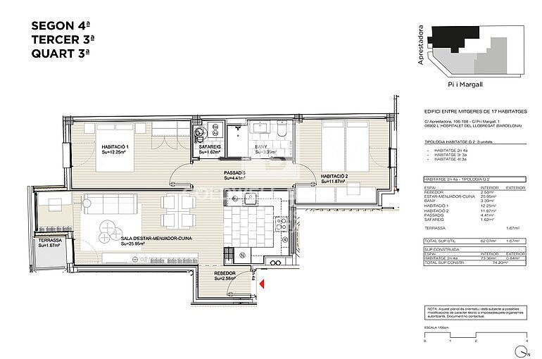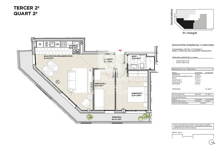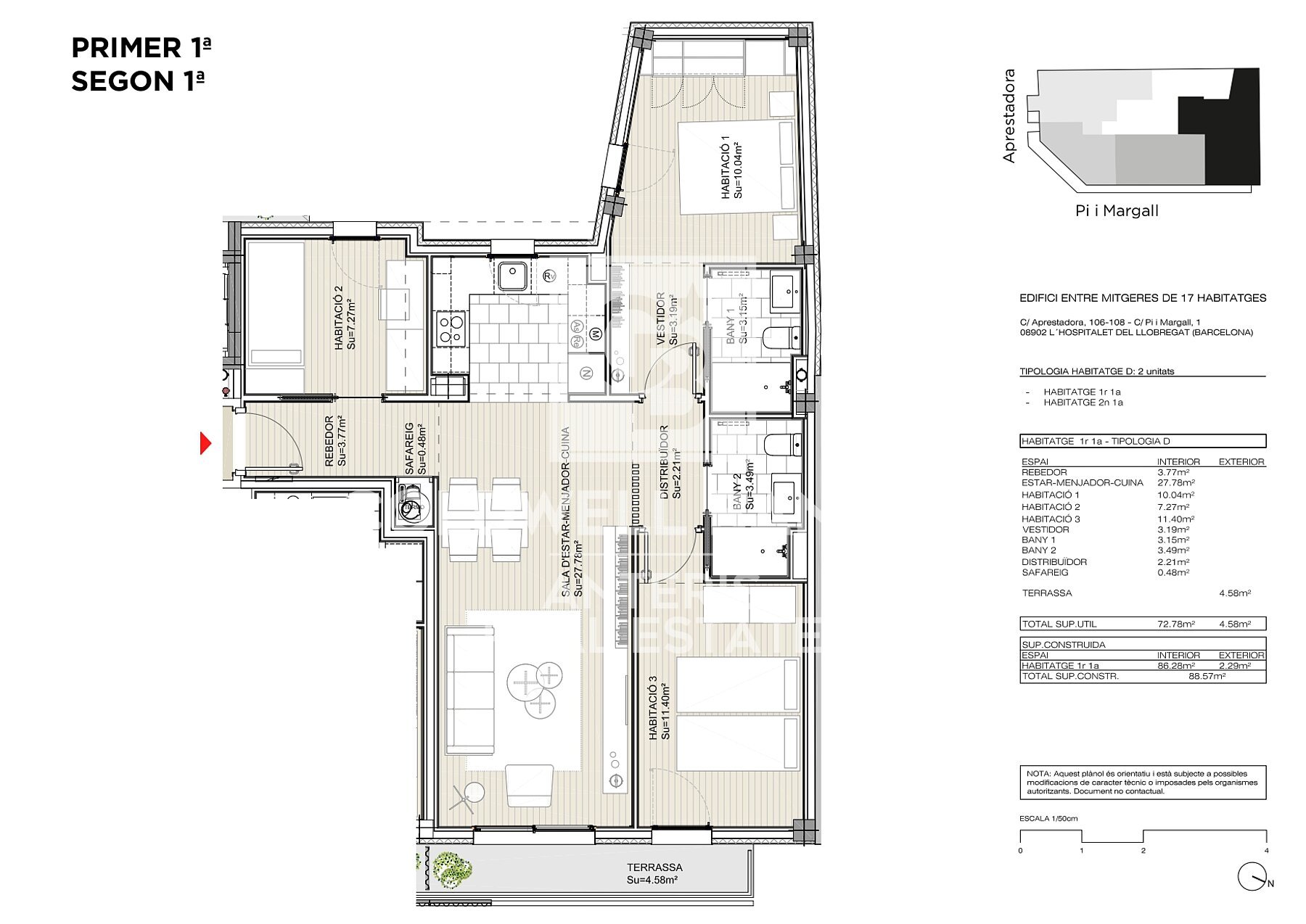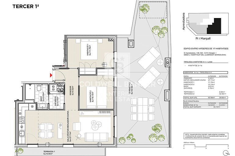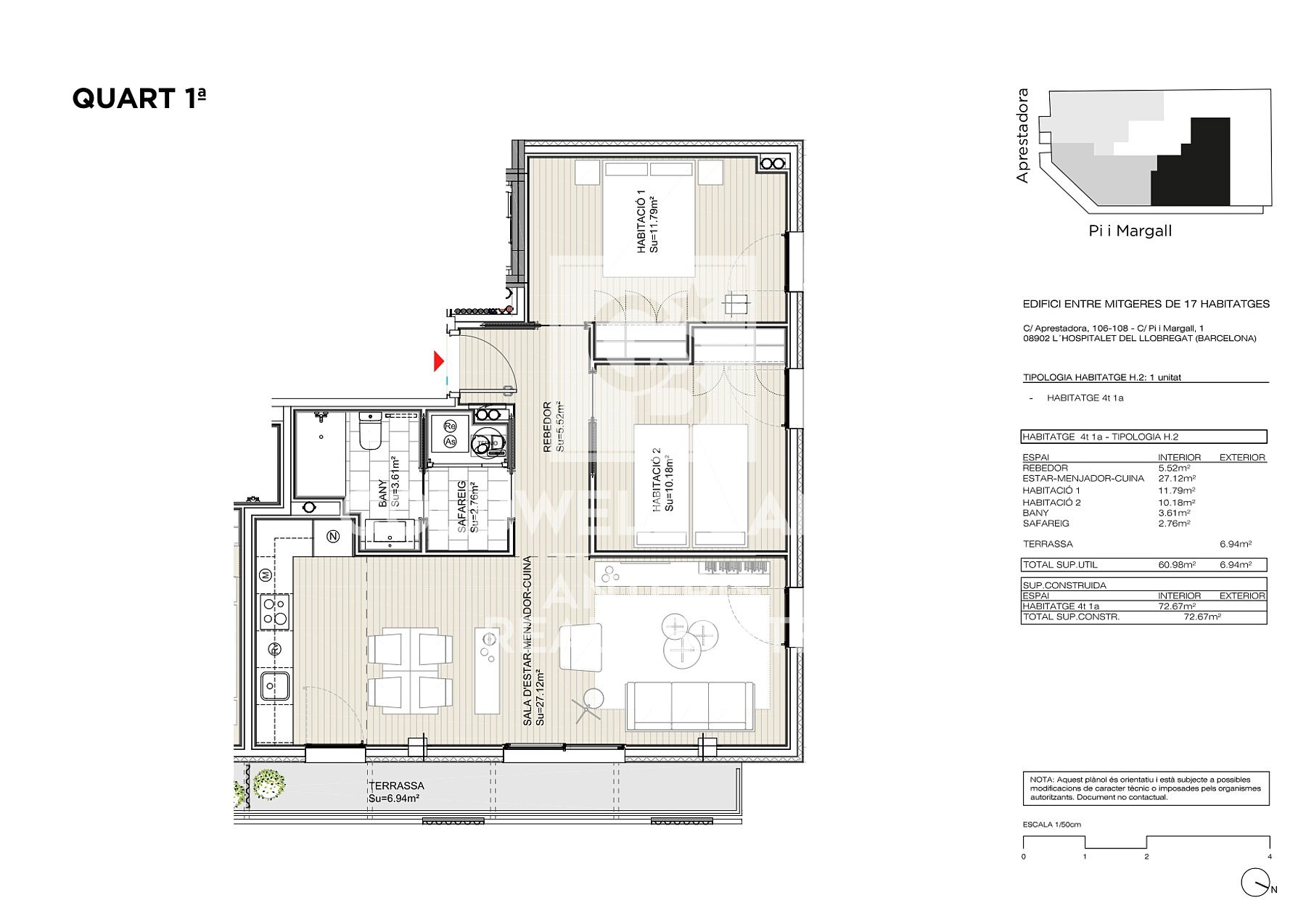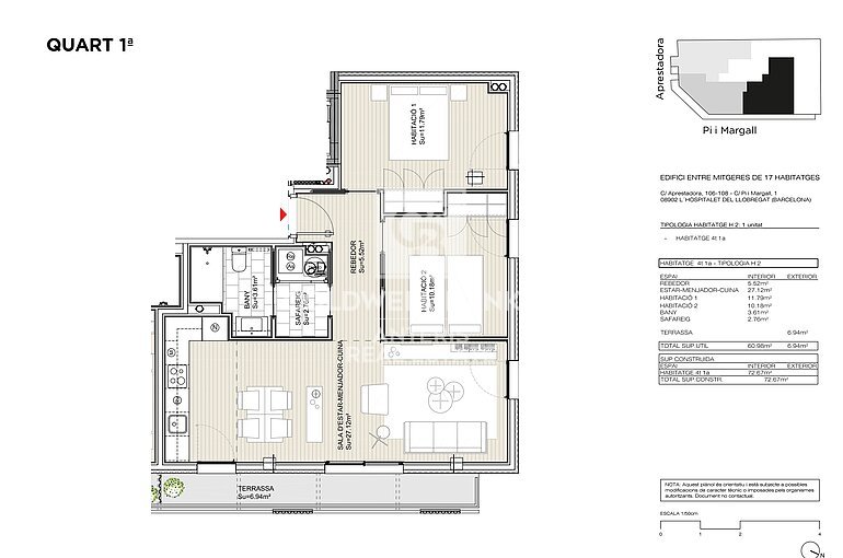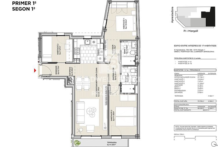 La vivienda está ubicada en un edificio de obra nueva que está bajo construcción entre las Calle de Aprestadora y Pi i Maragall en Hospitalet.