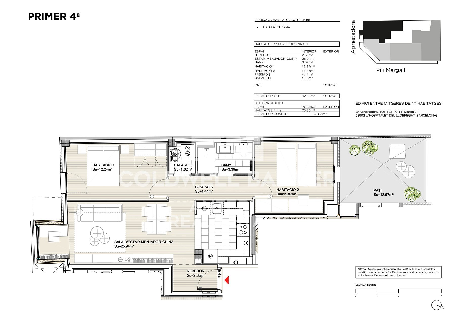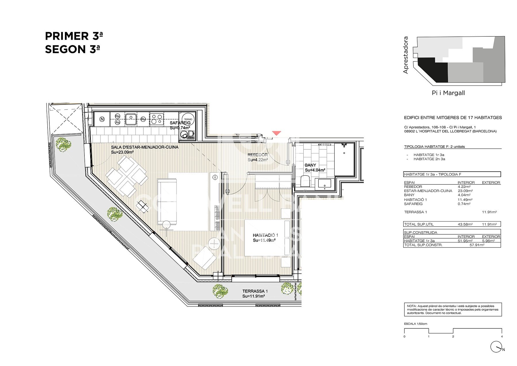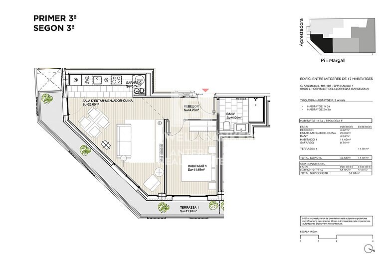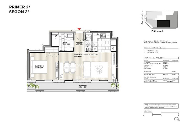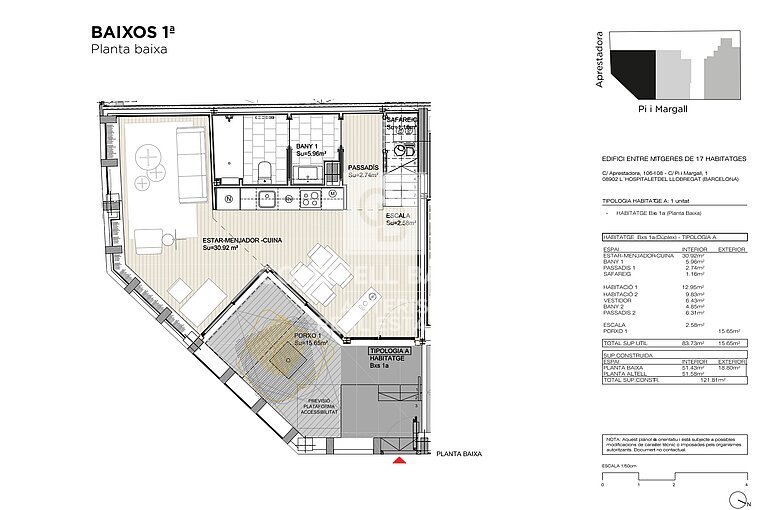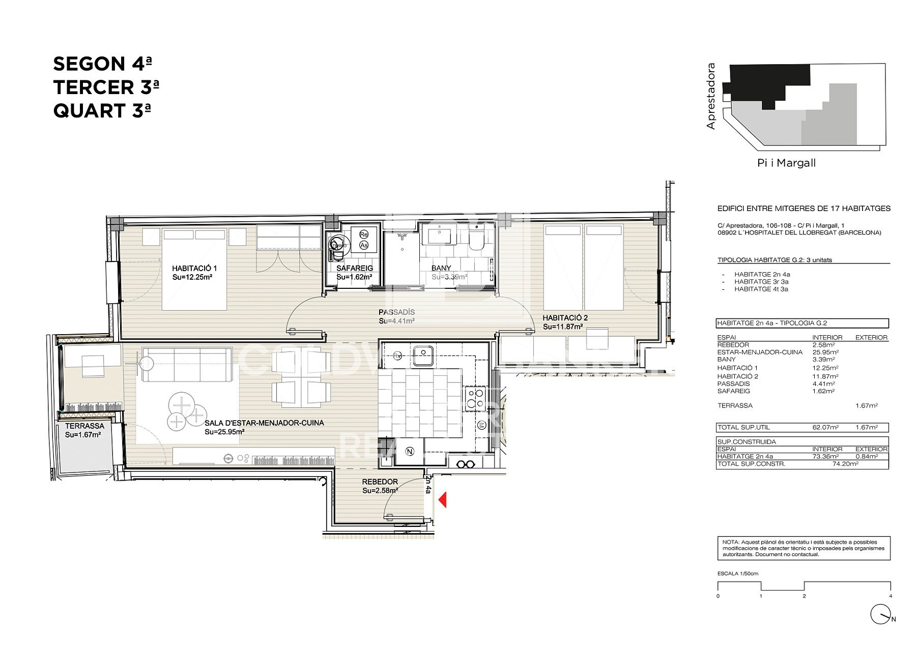 La vivienda está ubicada en un edificio de obra nueva que está bajo construcción entre las Calle de Aprestadora y Pi i Maragall en Hospitalet.