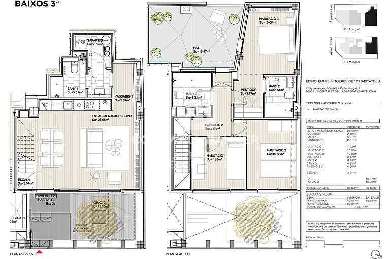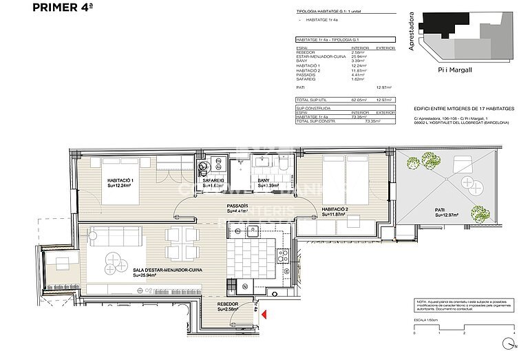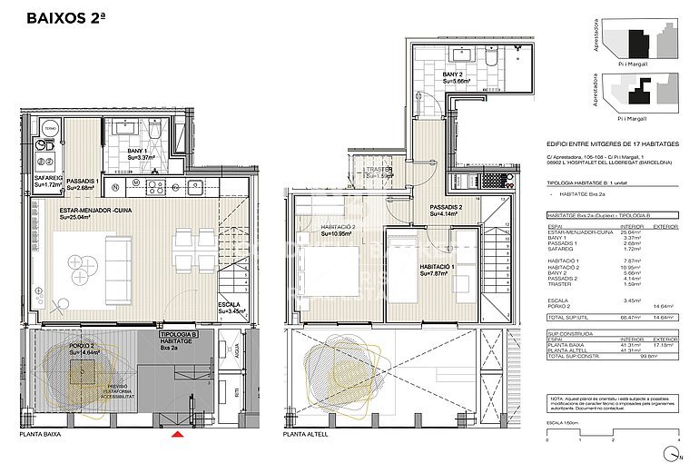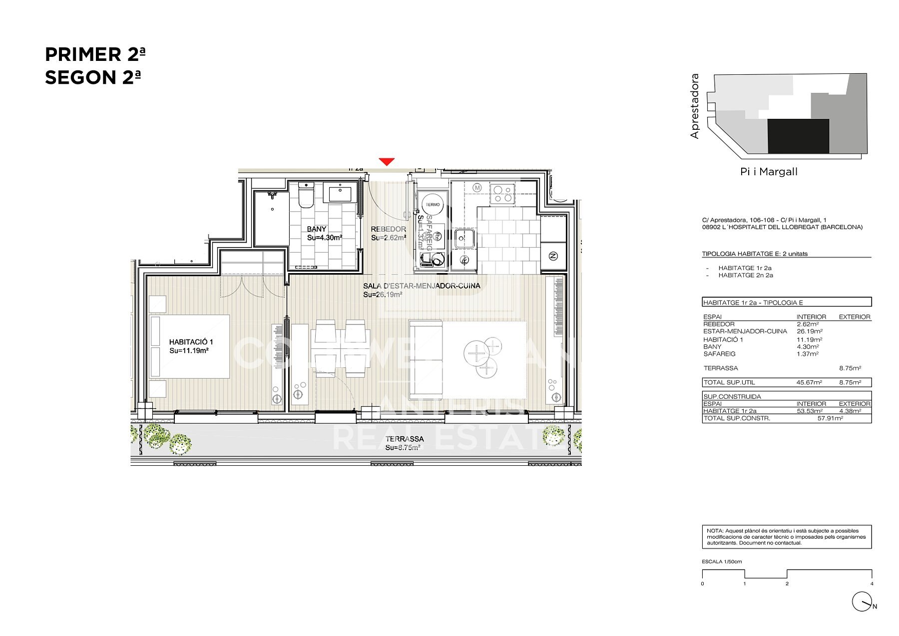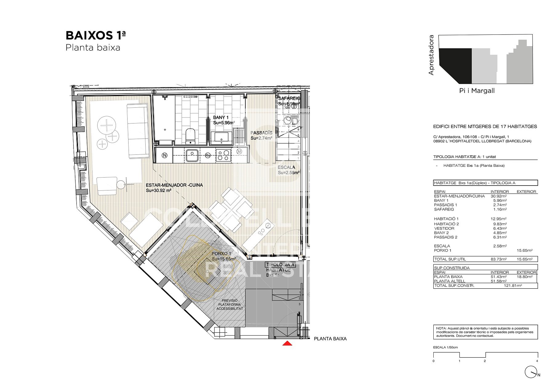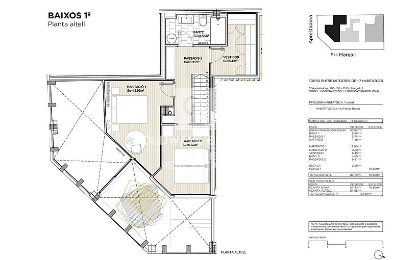 La vivienda está ubicada en un edificio de obra nueva que está bajo construcción entre las Calle de Aprestadora y Pi i Maragall en Hospitalet.